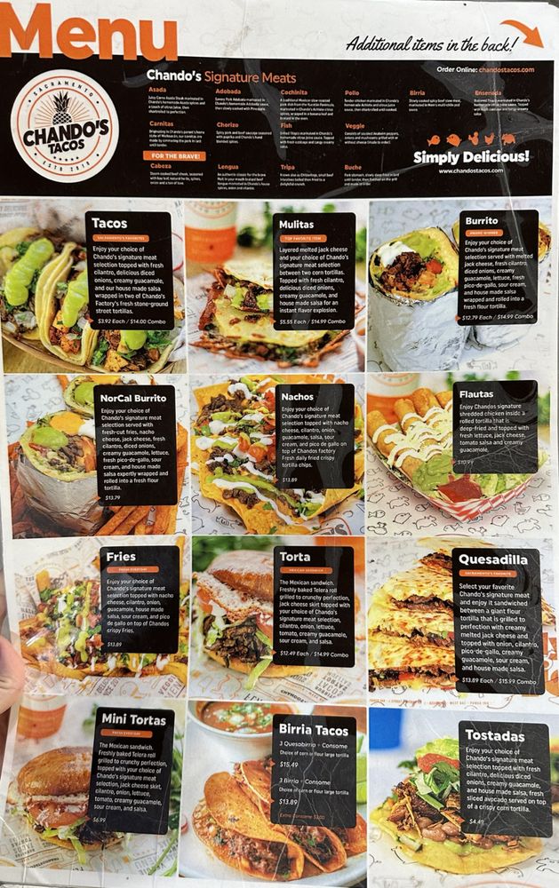 “ I visited Chandos Tacos twice during my time in, Roseville. The value is undeniable, providing a feast for the senses without weighing down the wallet. The variety of meats from the robustly flavored Carne Asada, the tender Carnitas, to the perfectly seasoned Chicken. The service matches the quality of the food efficient and friendly, ensuring a dining experience thats as enjoyable as it is memorable. ”